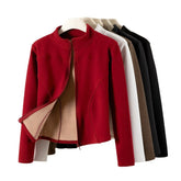 Stand Collar Short Coat Cashmere Hoodie Women Plus Velvet Thickening