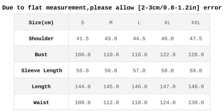 2. Please allow 2–3 cm difference due to manual measurement.