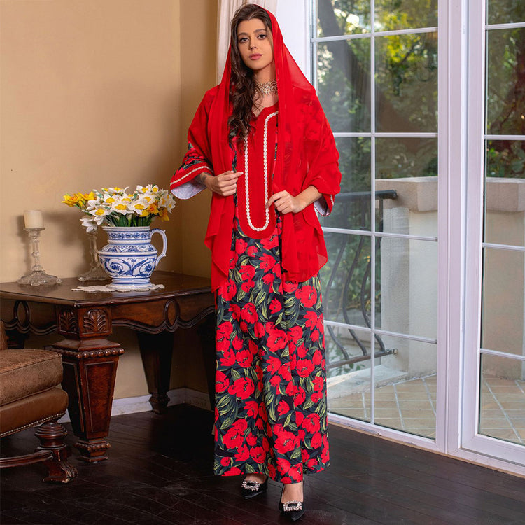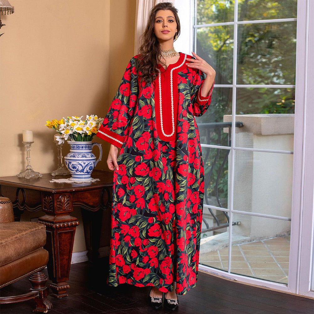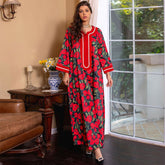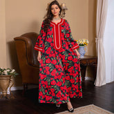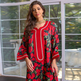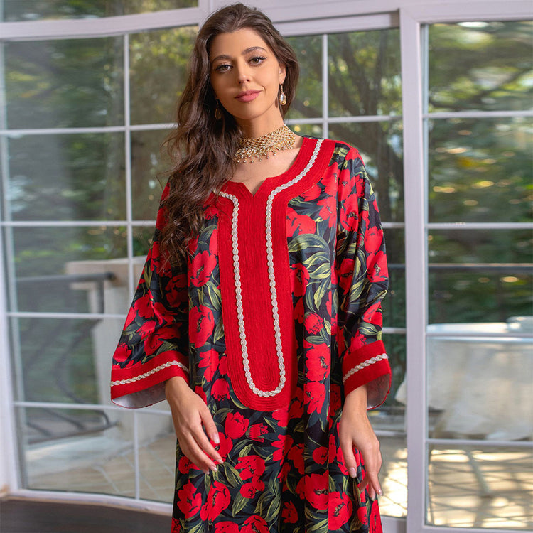 Sweet V-neck Color Contrast Ribbon Splicing Flared Sleeve Kaftan