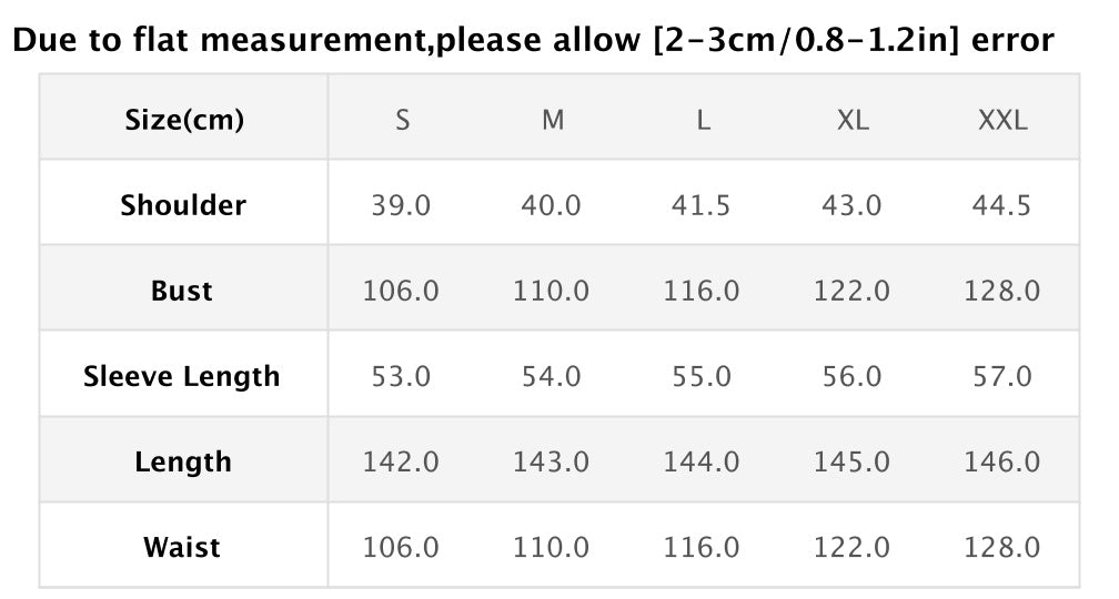 Please refer to the size chart carefully before purchasing. If you are unsure about sizing, please contact our customer service.