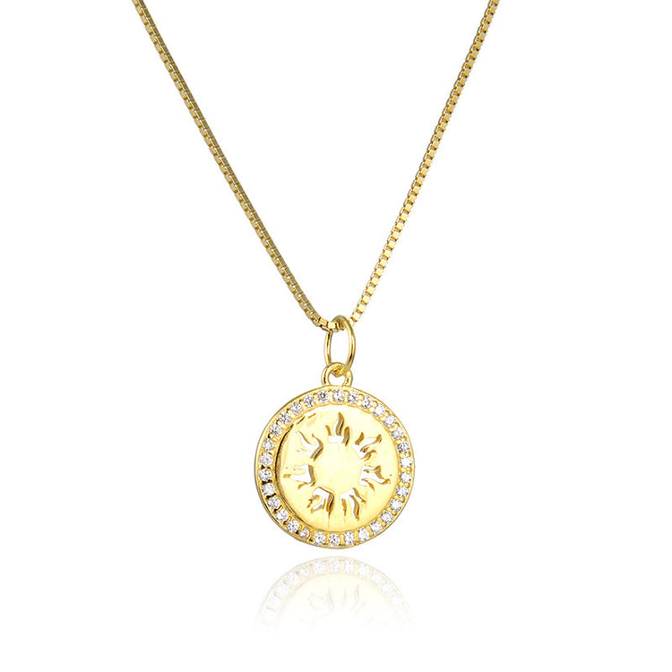 Sun Fire Round Clavicle Chain Necklace Female S925 Sterling Silver