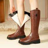 Women's High Tube Long Boots Real Sheepskin Fur Integrated Fleece-lined Thickened