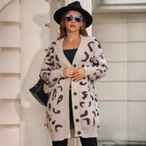 Women's Mid-length Leopard-print Sweater Baggy Coat