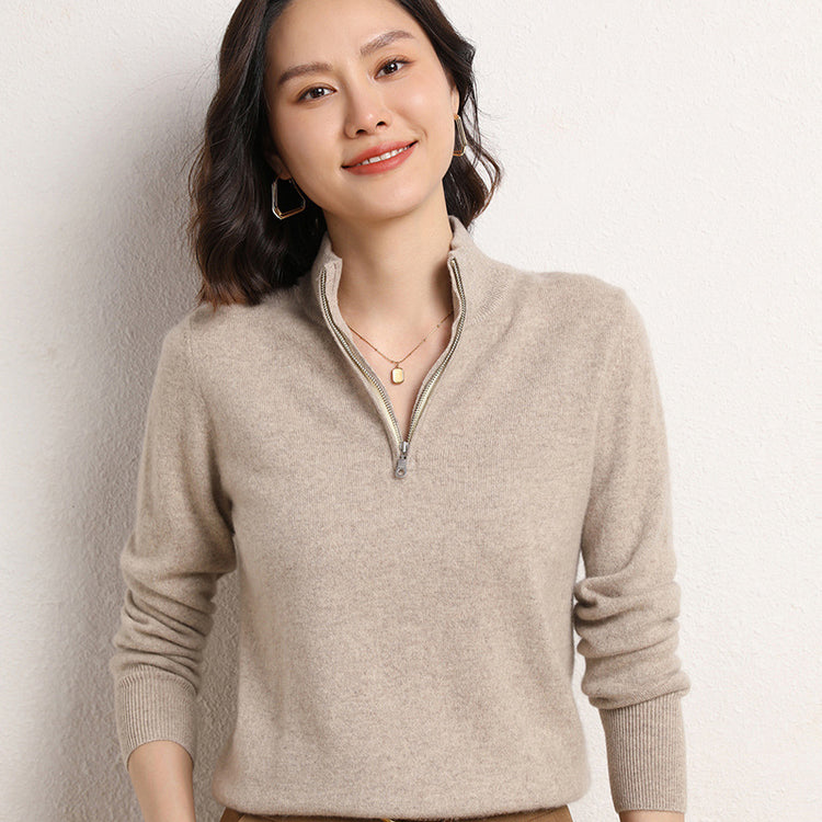 NAMIRA Elegant Half-Zip Knitted Pullover Sweater – Women’s Winter Fashion