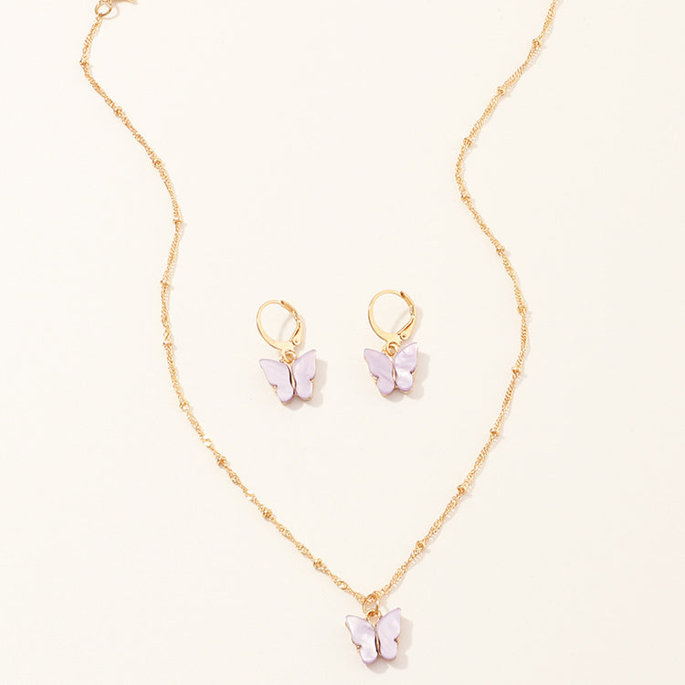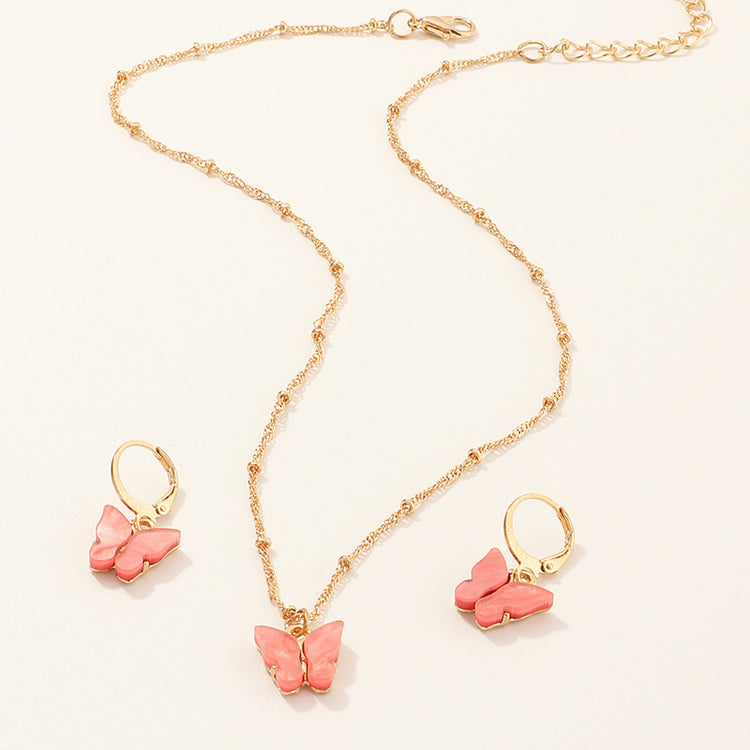 Creative Fashion Resin Butterfly Necklace And Earring Set