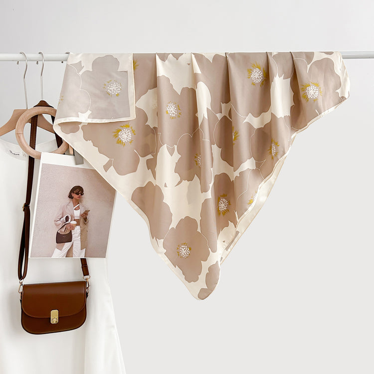 Design Floral Printed Square Scarf Women's Artistic Style Retro