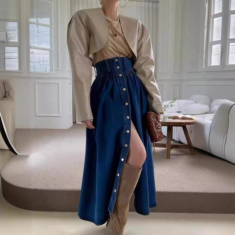 Fashion Slimming Single-breasted Denim Skirt