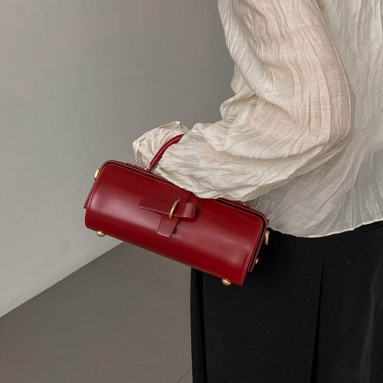 First Layer Cowhide Underarm Single Shoulder Cylinder Messenger Bag