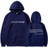 Fleece-lined Plain Letter Print Pocket Drawstring Print Hoodie