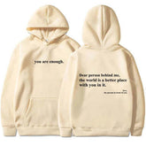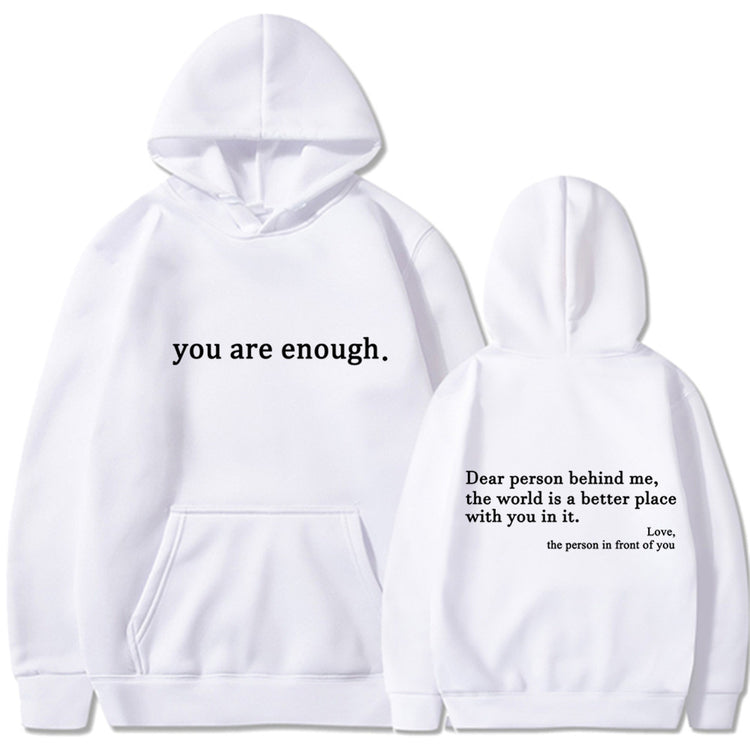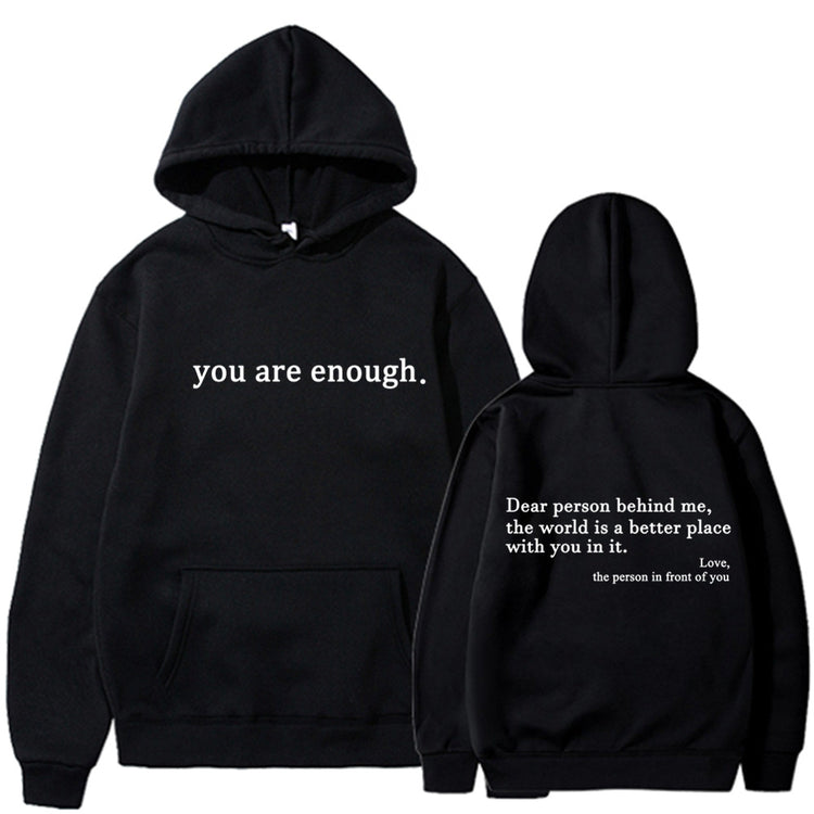 Fleece-lined Plain Letter Print Pocket Drawstring Print Hoodie