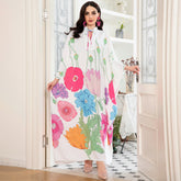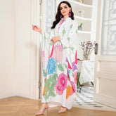 Chic vacation-style long dress with a sweet floral and botanical print, designed for effortless elegance and comfort.