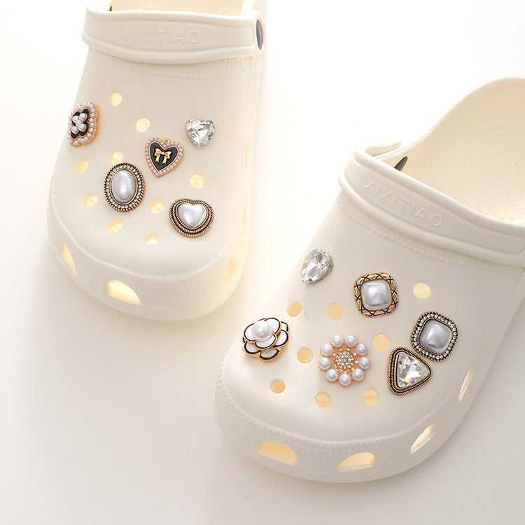 Jeans Button Hole Shoes Diy Accessories Bright Crystal Classic Style Ornament Accessories Upper Pearl Flower