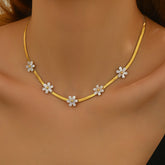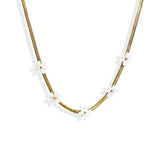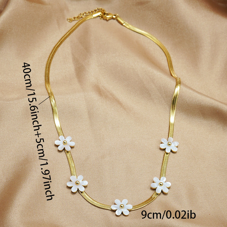 Lxalry 18K Gold Plated Bohemian Floral Necklace Stainless Steel Skin Safe Jewelry With White Blossom Charms Hypoallergenic Tarnish Free Gift For Women Wife Mom, Festive Occasions Everyday Boho