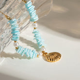 Mint Green Shell Patch Pearl Shell Pendant Necklace Jewelry