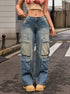 Retro Nostalgic Washed Multi-pocket Cargo Pants Straight Jeans