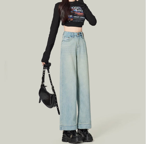 Small Loose Slim Retro Blue High Waist Nine Points Straight Jeans