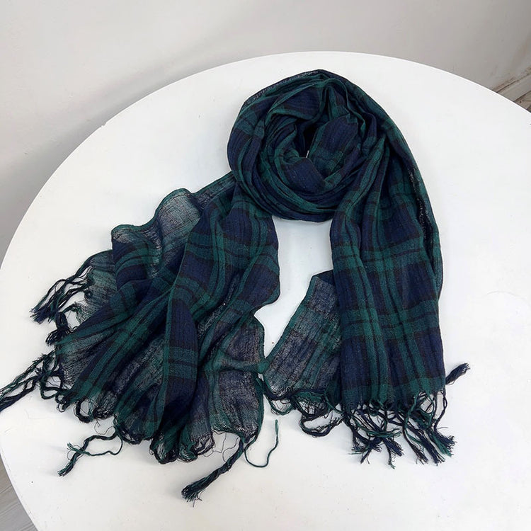 Thin Cotton And Linen Plaid Scarf Soft Neck Shawl