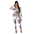 Women's Casual Fashion USD Printed Lace Up Long-sleeved Trousers Two-piece Suit