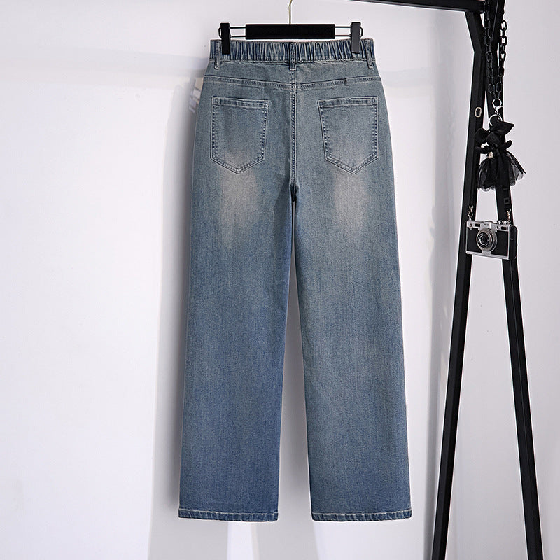✨ Effortless Elegance: Plus-Size Straight-Leg Cotton Jeans