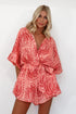 Women's Printed Lace Up Waist-tight Cardigan 5-point Sleeve One-piece Shorts